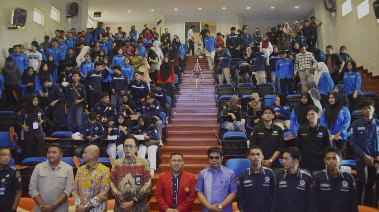 OCEANIA 2025. Himpunan Mahasiswa Teknik Kelautan (HMTK) Unhas menggelar event Oceania 2025 di Gedung CSA, Fakultas Teknik Unhas, Gowa, Jumat (24/10/2025). Peserta dan panitia tampak berfoto bersama di sela presentasi inovasi. (dok oceania 2025)