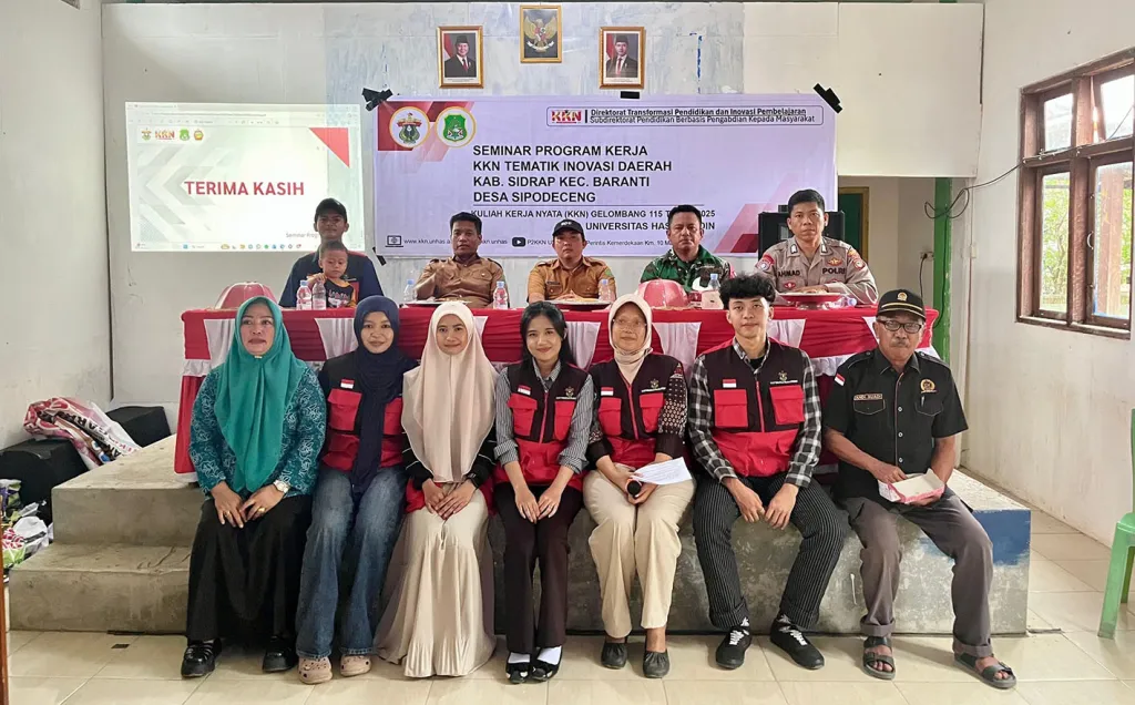 Mahasiswa KKN-T Unhas Gelombang 115 melaksanakan seminar program kerja di Desa Sipodeceng, Kecamatan Baranti, Kabupaten Sidenreng Rappang (Sidrap). Mahasiswa KKN Unhas di Desa Sipodeceng menjalankan delapan proker mulai Januari hingga Februari 2026. (dok kkn unhas)