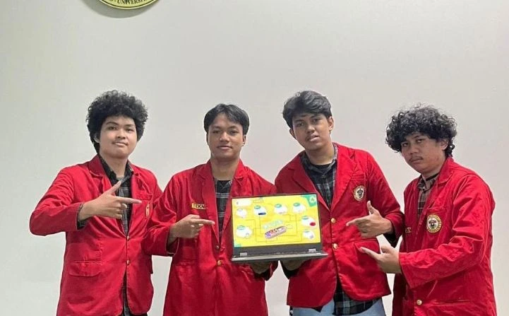 Tim Aerotrak terdiri atas Muhammad Al Mabrur G, Muhammad Farid Hidayat, Panji Bagus Satria, dan Erland Gavril Rande. Mereka menjadi juara di EcoBoss Greenpreneurship Pitch Challenge 2025 melalui inovasi bertajuk Aerotrak, satu perangkat portabel pendeteksi polusi udara berbasis keberlanjutan lingkungan. (dok humas unhas)