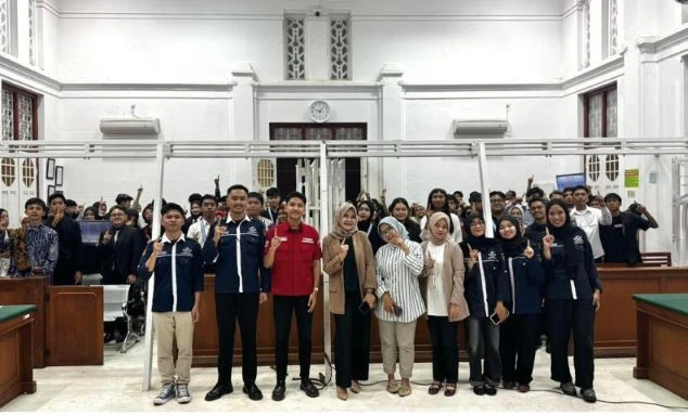 PERADILAN - Mahasiswa baru Fakultas Hukum Unhas belajar persidangan di Pengadilan Negeri Makassar. Foto: ALSA LC Unhas