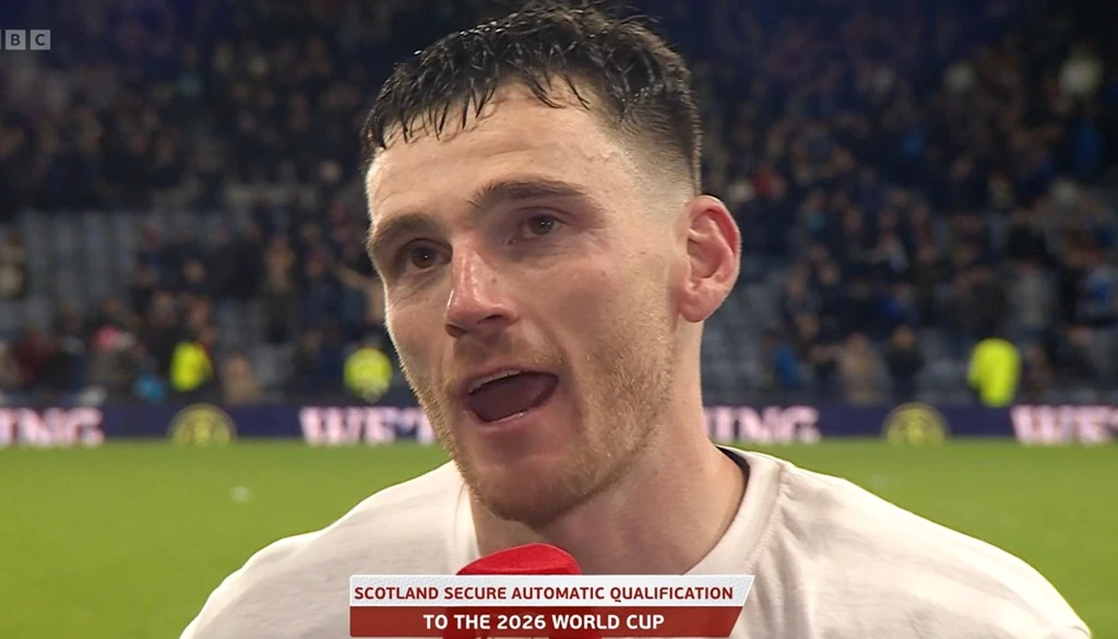 Andy Robertson memberikan wawancara dengan BBC setelah berhasil lolos ke Piala Dunia bersama Skotlandia, Rabu (19/11/2025). Ia berbicara tentang percakapannya dengan mantan rekan setimnya di Liverpool, Diogo Jota yang telah meninggal dunia. (the bbc)