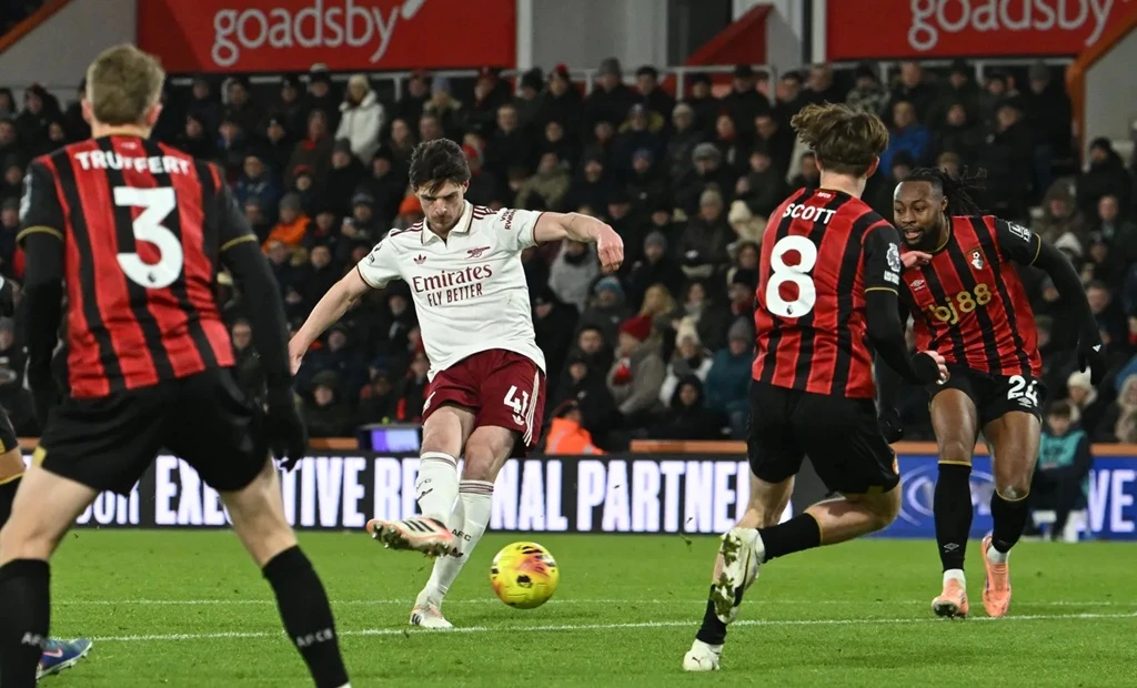 Gol kedua Rice lahir pada menit ke-62. Bermula dari kesalahan Viktor Gyökeres yang kehilangan bola di depan kotak penalti Bournemouth, Ødegaard menyodorkan umpan matang ke Rice yang melepaskan tembakan mendatar menembus pojok kiri gawang.