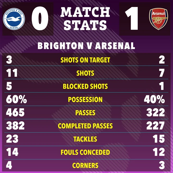 Statistik Laga Brighton vs Arsenal. (the sun)