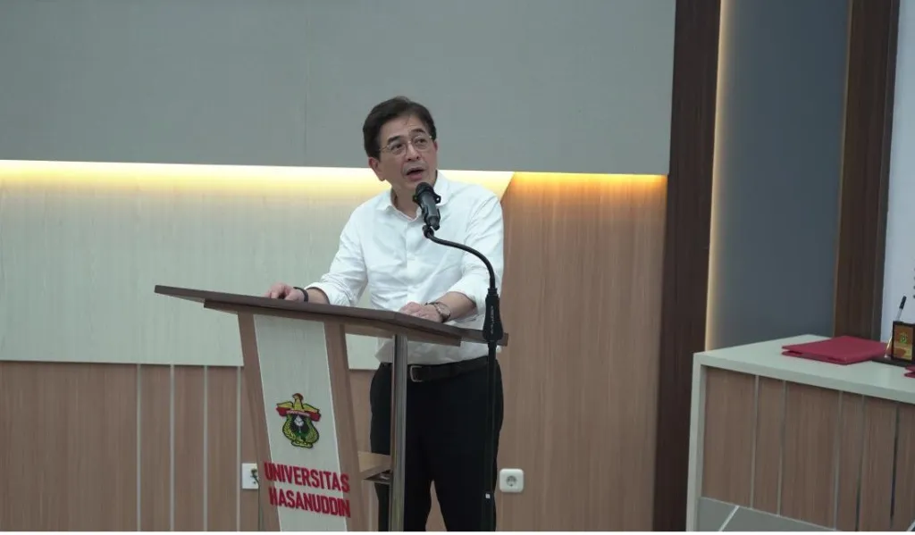 Founder and Chairman Sriwijaya Capital Management, M Arsjad Rasjid PM saat tampil dalam Leader’s Talk bertema “Dari Kampus ke Industri: Menutup Gap Skill Generasi Muda” di Arsjad Rasjid Lecture Theater, Kampus Unhas Tamalanrea, Senin (27/4/2026). (Unhas TV/Zahra Tsabita)