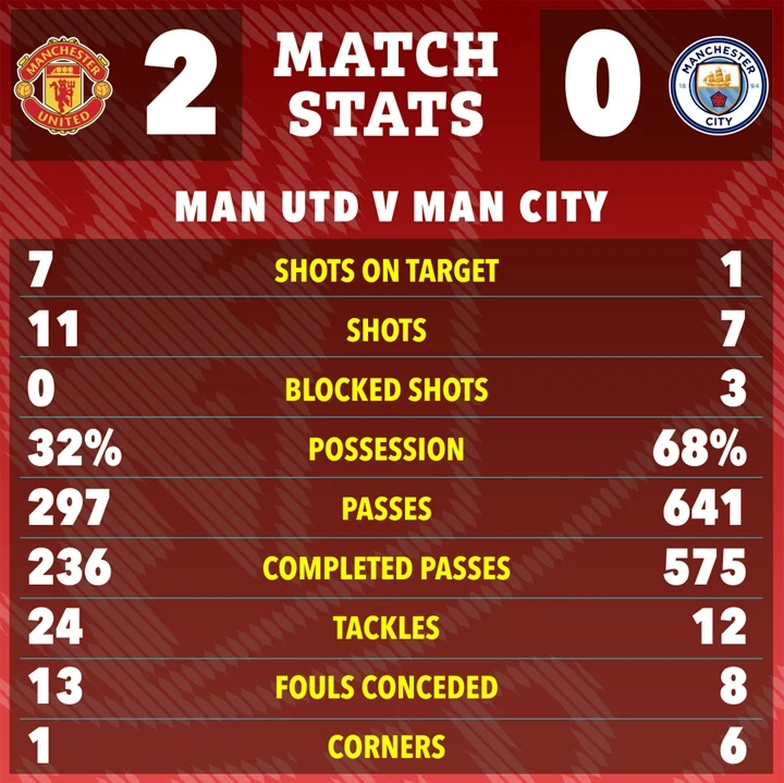 Statistik Laga MU vs Manchester City. (the sun)