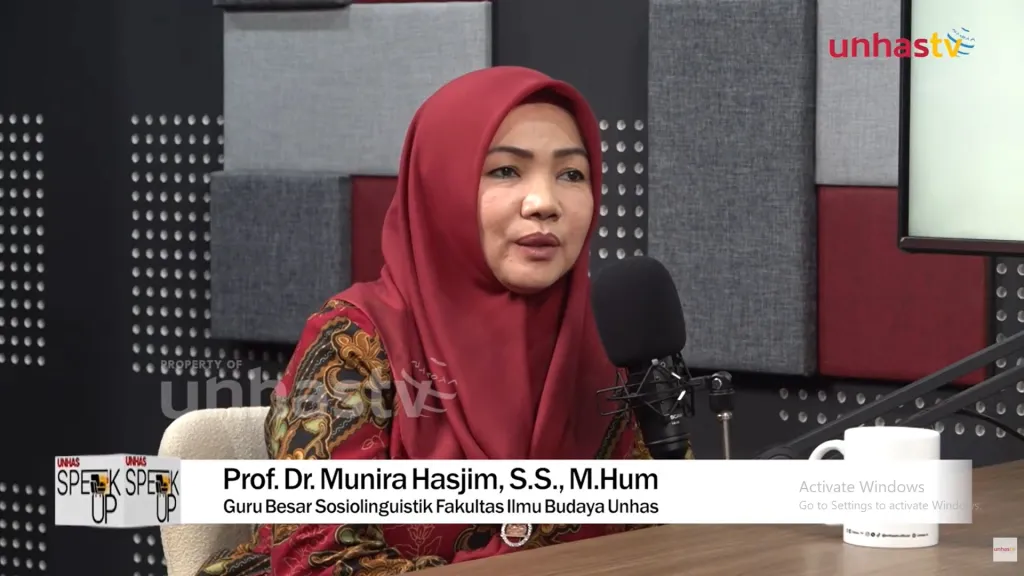 Nah, bahasa itulah yang dibahas Prof Dr Munira Hasjim SS MHum, guru besar sosiolinguistik Fakultas Ilmu Budaya Unhas, dalam program Unhas Speak Up di Studio Unhas TV, Desember 2025 lalu.