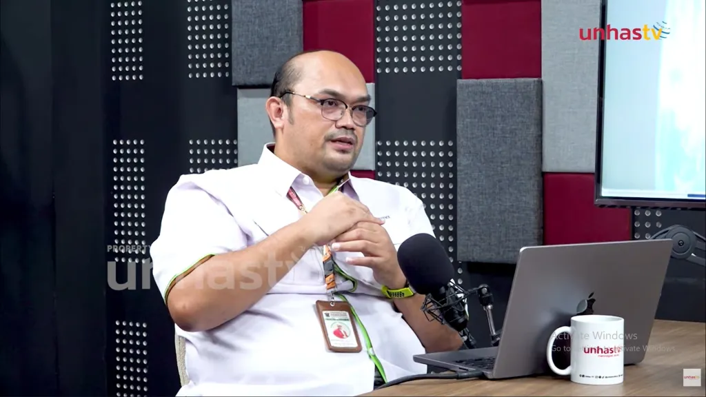 Dosen Fakultas Kehutanan Unhas Andang Suryana Soma SHut MP PhD saat memberikan penjelasan mengenai banjir Sumatera di program podcast Unhas Speak Up, Rabu, 3 Desember 2025. (dok unhas tv)