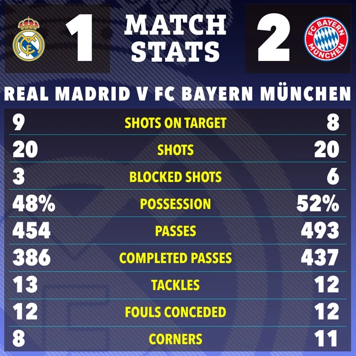 Statistik Pertandingan Real Madrid vs Bayern Munich. (The Sun)
