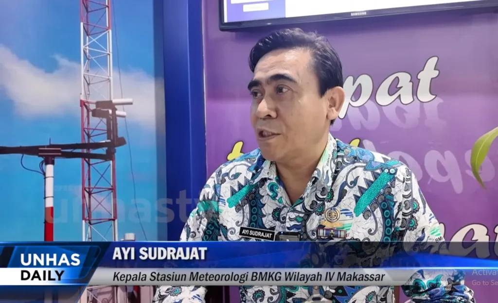 Kepala Stasiun Meteorologi BMKG Wilayah IV Makassar Ayi Sudrajat. (Unhas TV/Rahmatia Ardi)