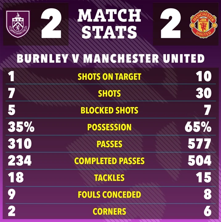 Statistik pertandingan Burnley vs Manchester United