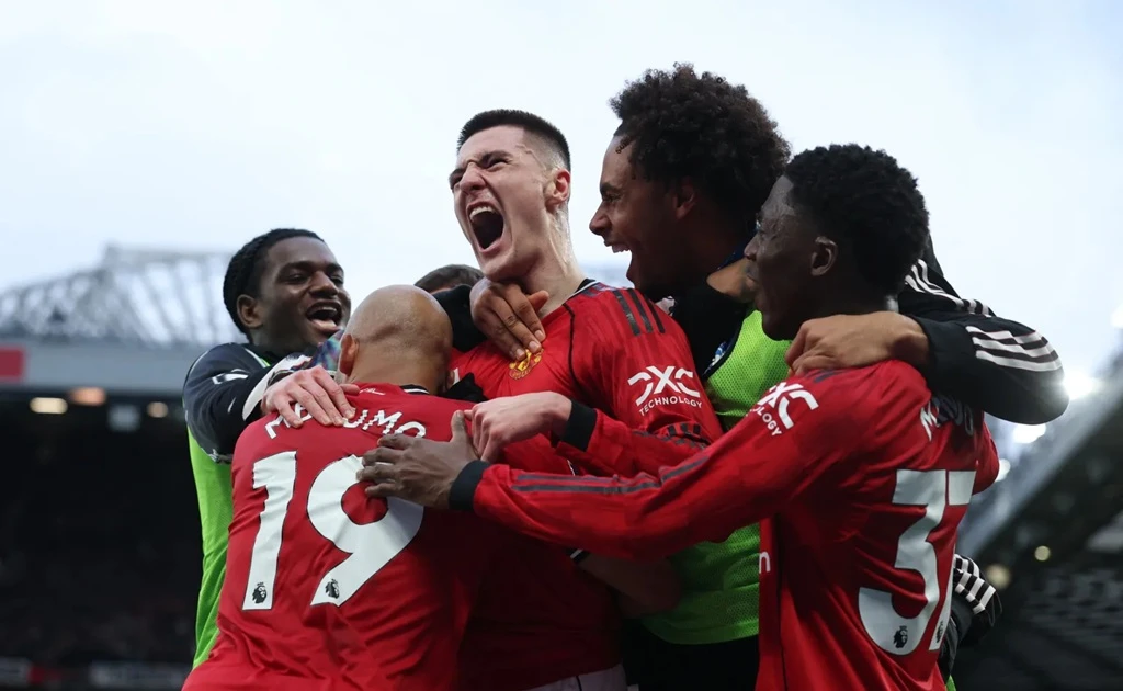 Menerima umpan silang mendatar Bruno Fernandes, Sesko mengontrol bola, memutar badan, lalu melepaskan tembakan keras ke arah Stretford End. Stadion bergemuruh. Para pemain cadangan berhamburan ke lapangan.