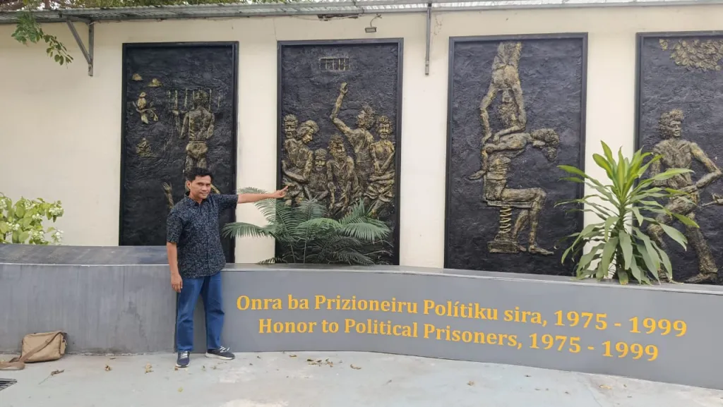 Di satu titik perjalanan, Maria mengajak saya singgah ke Museum Chega!. Bangunan kolonial peninggalan Portugis ini tampak sederhana dari luar. Namun begitu pintu kayunya dibuka, atmosfer berubah drastis. Ruangan itu menyimpan luka sejarah yang tak terucapkan: panel foto, dokumen penahanan, dan testimoni penyintas.