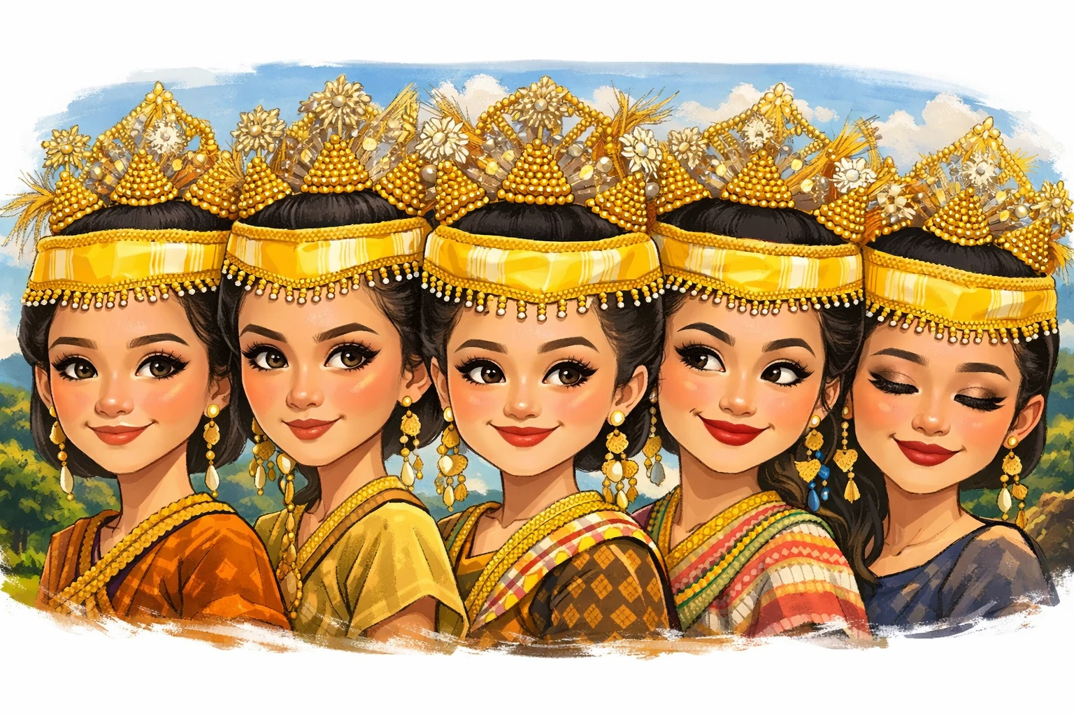 Ilustrasi gadis-gadis di Pulau Muna yang berbusana adat