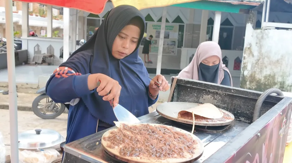 Aroma gula yang dipanaskan, wangi santan, dan suara spatula yang beradu dengan wajan tipis bercampur menjadi satu. Di tengah keramaian itu, sebuah kedai kecil bernama Special Crepes Ta tampak tak pernah sepi.