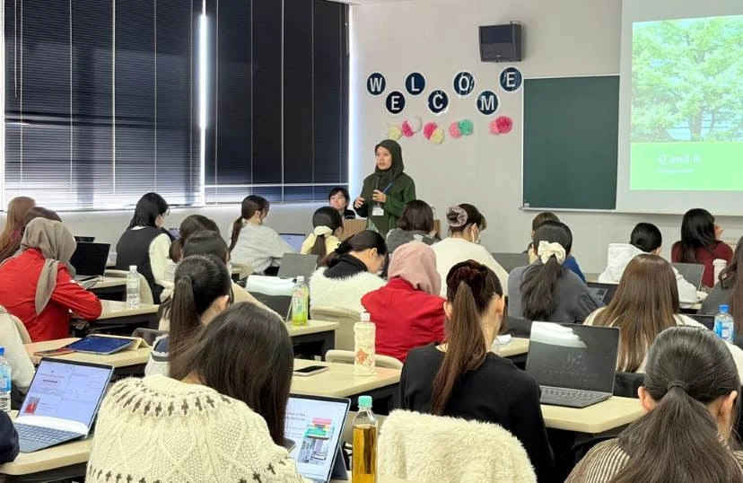Aulia Insani membawakan kuliah pada International Nursing II dan dihadiri sekitar 100 mahasiswa keperawatan Yokohama City University, serta 10 mahasiswa Unhas.