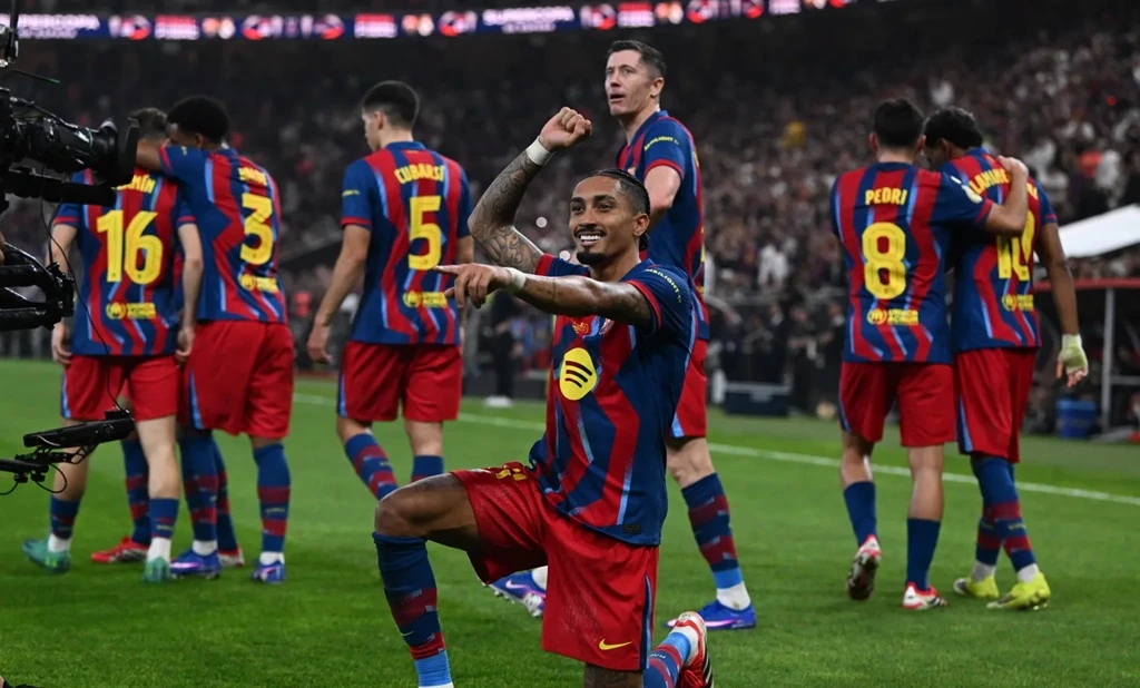 Lima gol tercipta, emosi tumpah ruah, dan satu gol “aneh” dari Raphinha menjadi penentu. Barcelona menang 3-2. Trofi pun terbang ke Catalonia.