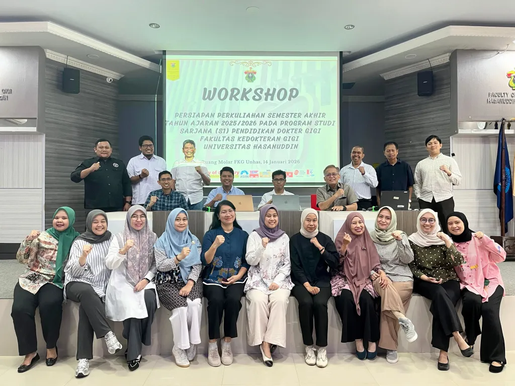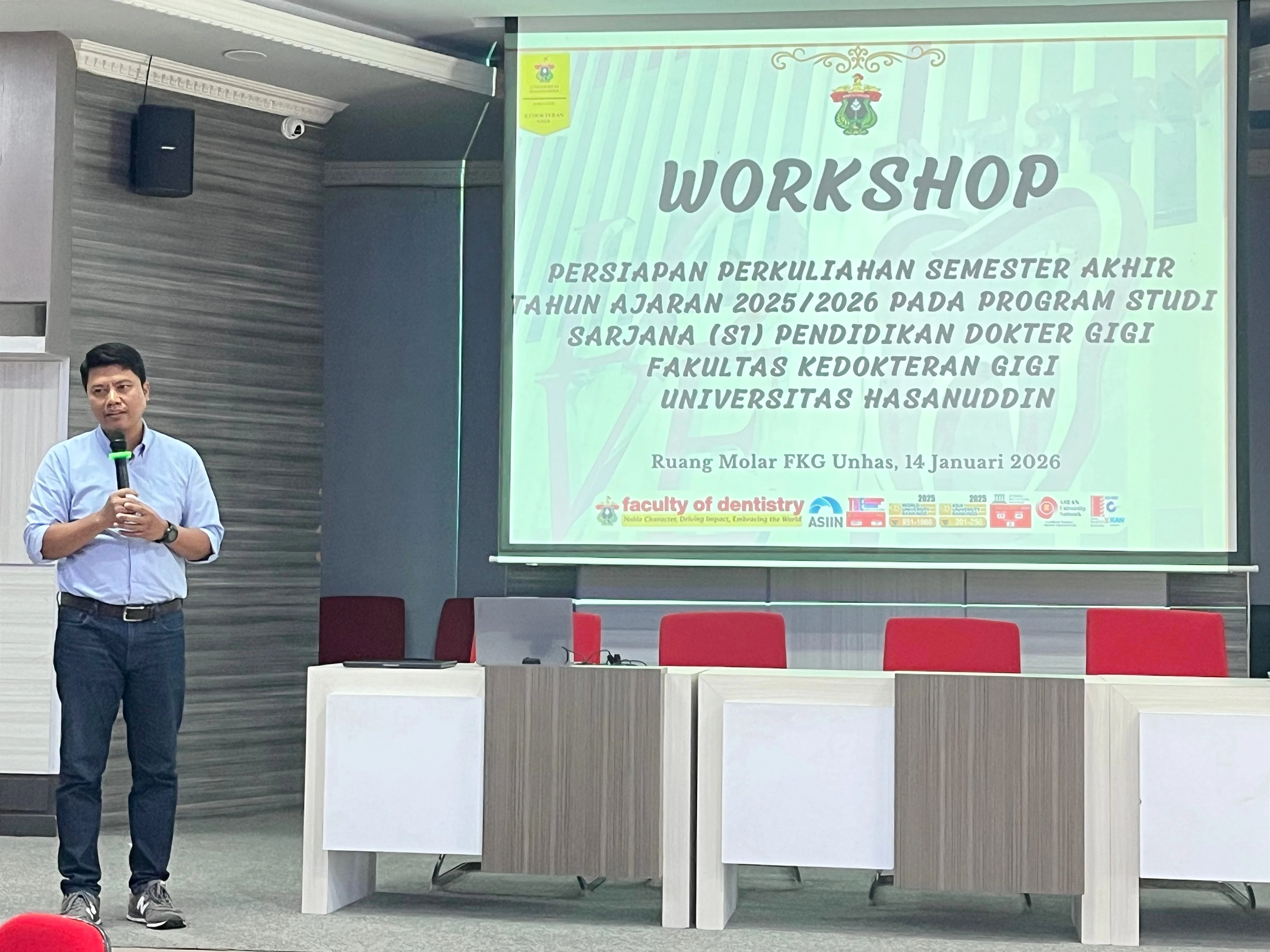MAKASSAR, UNHAS.TV - Sebagai upaya mempersiapkan pelaksanaan perkuliahan Semester Genap Tahun Akademik 2025/2026, Fakultas Kedokteran Gigi (FKG) Universitas Hasanuddin (Unhas) menggelar Workshop Persiapan Perkuliahan Semester Akhir T.A. 2025/2026 Program Studi Sarjana Kedokteran Gigi.