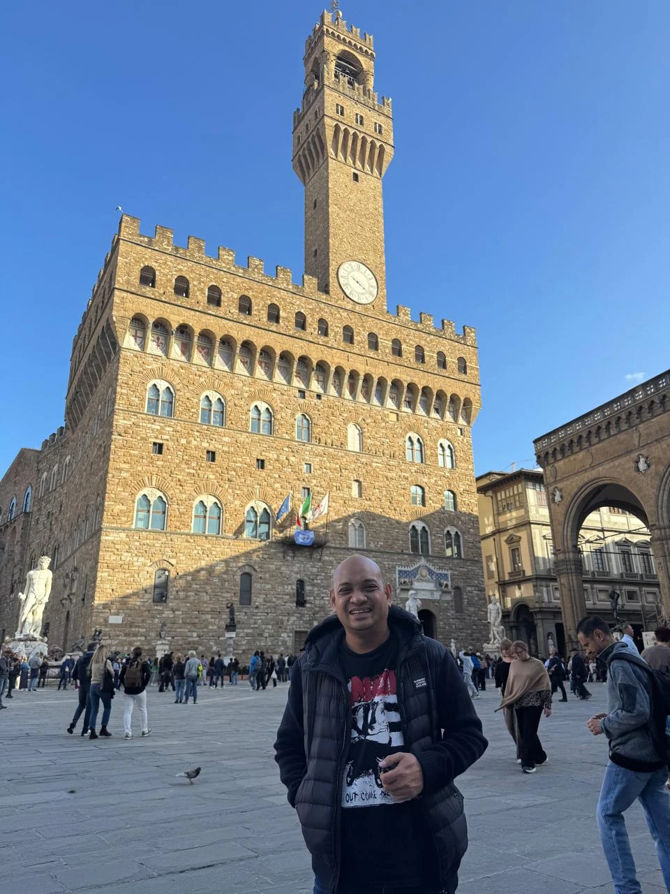 Ketika berjalan menyusuri Piazza della Signoria menjelang senja, saya melihat cahaya matahari menyapu bangunan-bangunan bersejarah. Rasanya seolah saya melangkah di antara bayangan para pemikir, seniman, dan pelaku sejarah yang pernah hidup di sini.