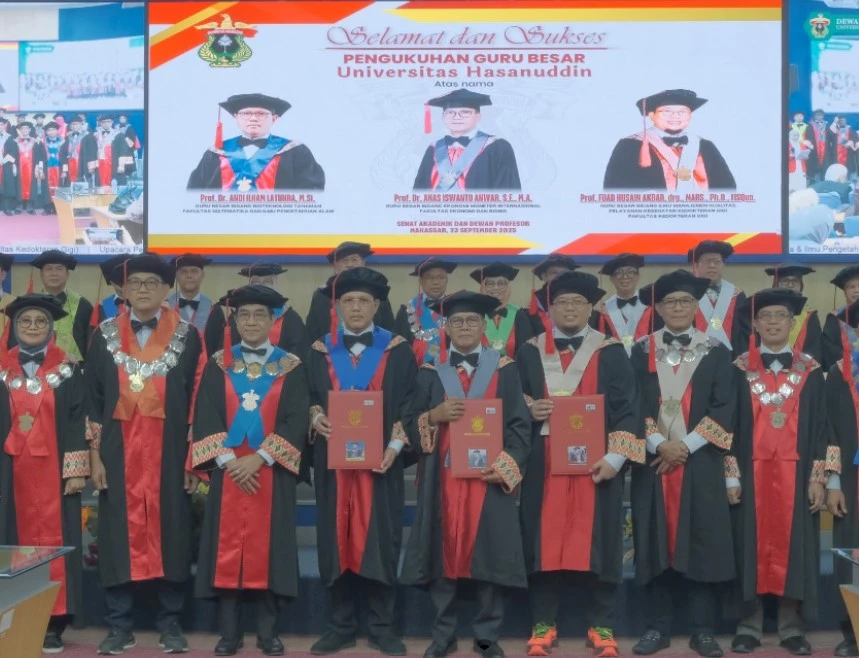 Proses pengukuhan dihadiri Rektor Unhas Prof Dr Ir Jamaluddin Jompa MSc, Ketua, Sekretaris, dan anggota Majelis Wali Amanat, Senat Akademik, Dewan Profesor, tamu undangan, serta keluarga besar dari tiga profesor yang dikukuhkan.