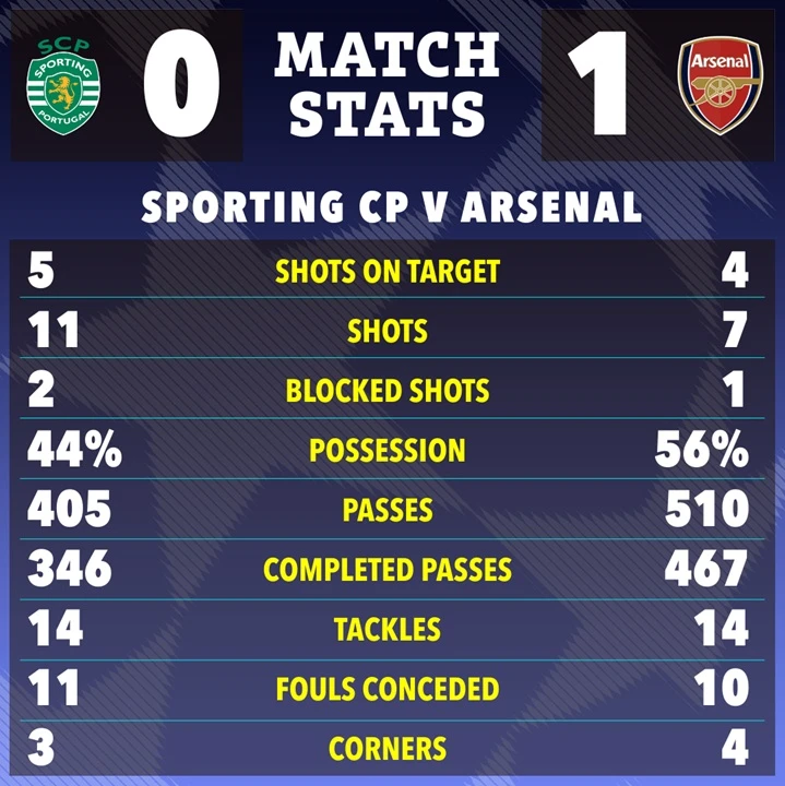 Statistik Pertandingan Sporting vs Arsenal. (The Sun)