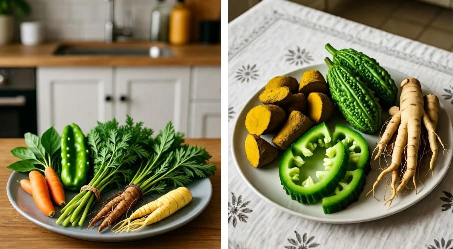 Parel (nama lokal untuk bitter melon) mengandung charantin dan polypeptide-P yang memiliki efek menyerupai insulin, membantu menurunkan kadar gula darah.
