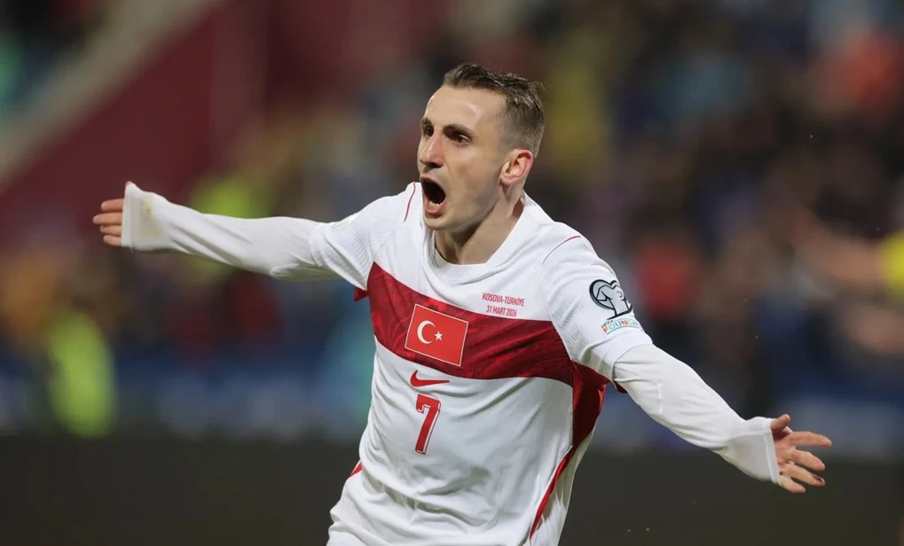 GOL TUNGGAL - Gelandang Kerem Akturkoglu mencetak satu-satunya gol bagi Turki untuk mengalahkan Kosovo dan meraih tiket Piala Dunia 2026. (The Sun/Reuters)