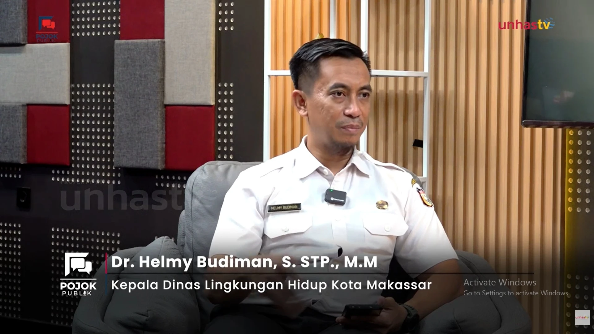 Kepala Dinas Lingkungan Hidup Kota Makassar Dr Helmy Budiman SSTP MM. saat hadir dalam program siniar Pojok Publik di studion unhas.tv, Rabu (3/512/2025). (dok unhas tv)