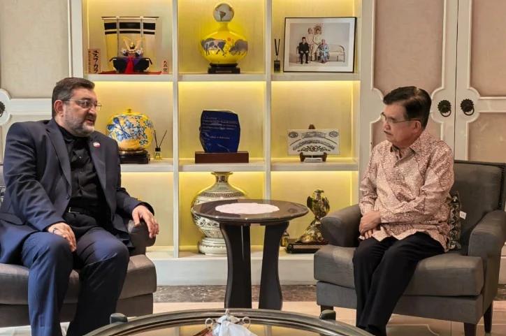 JAKARTA, UNHAS.TV - Wakil Presiden ke-10 dan ke-12 RI Jusuf Kalla menerima kunjungan Duta Besar Iran untuk Indonesia, Mohammad Boroujerdi, di kediamannya di Jakarta Selatan, Selasa (3/3/2026). Pada pertemuan itu, Jusuf Kalla didampingi oleh mantan Menteri Hukum dan HAM Prof Hamid Awaludin.