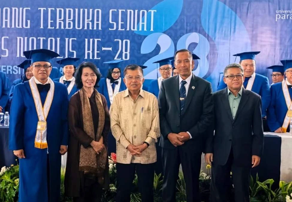 Jusuf Kalla juga menyampaikan syukur atas perjalanan 28 tahun Universitas Paramadina yang dinilainya sebagai hasil dari perjuangan panjang para pendiri dan civitas akademika.