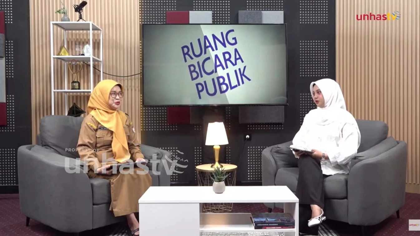 Kepala DP3A Kota Makassar, drg Ita Isdiana Anwar MKes saat tampil dalam Pojok Publik di Studio Unhas TV. (dok unhas tv)