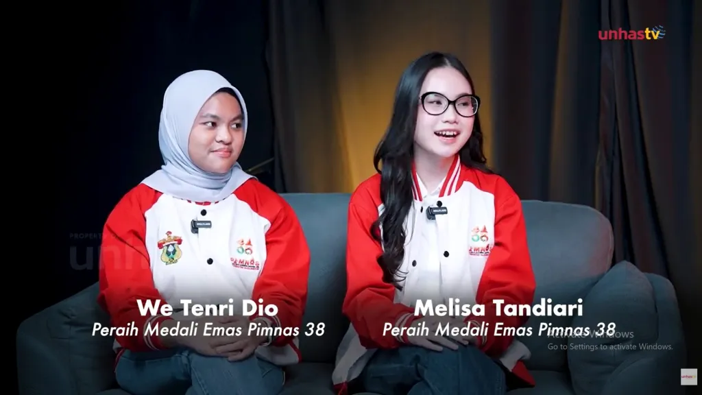 Mahasiswa Psikologi Unhas Melissa Tandiari dan We Tenri Dio berhasil meraih 2 emas di Pimnas 38 di Unhas Oktober 2025 lalu. (dok unhas tv)