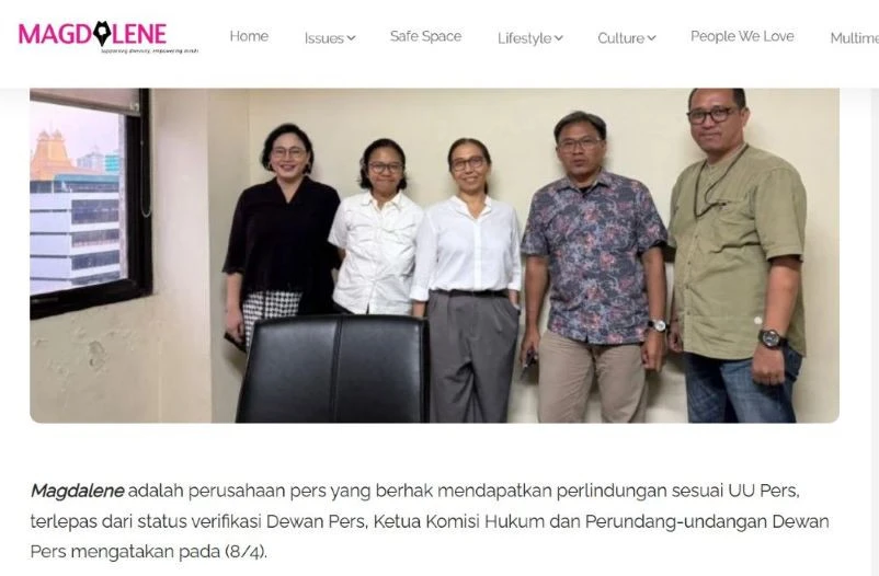"Jika ada pihak yang mengadukan konten pemberitaan Magdalene kepada Komdigi, maka pihak tersebut wajib menempuh prosedur standar penyelesaian sengketa pemberitaan yakni melalui mekanisme Hak Jawab dan Hak Koreksi," katanya.