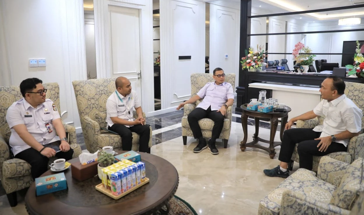 KUNKER. Sekda Kota Makassar Andi Zulkifly, menerima kunjungan kerja Bupati Sarolangun H Hurmin SE, di ruang rapat Sekda Makassar, Balai Kota Makassar, Rabu (11/2/2026). (dok pemkot)
