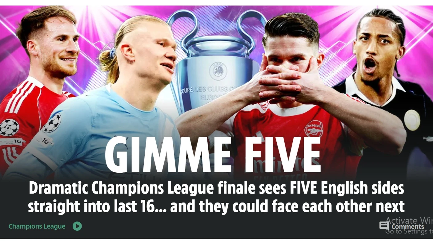 Sebanyak 5 dari 6 klub Inggris yang tampil di Liga Champions 2025/2026 lolos langsung ke babak 16 besar. Hanya Newcasle yang masuk babak play-off. (the sun)