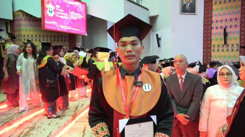 Alumni terbaik Fakultas Peternakan Unhas pada Wisuda Unhas Februari 2026, Sharul Ramadan Bin Sharif. (unhas.tv/moh resha maharam)