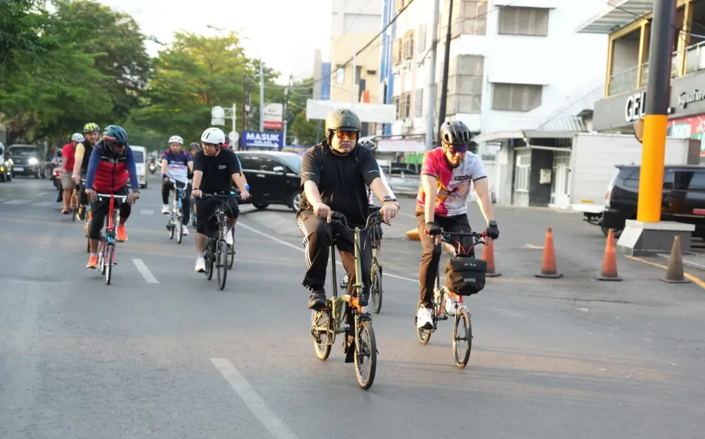 WFH - Wali Kota Makassar Munafri Arifuddin mengisi kegiatan Work From Home dengan bersepeda saat memantau aktivitas Jumat Bersih di Jalan Bali, Kelurahan Pattunuang, Kecamatan Wajo, Jumat (24/4/2026). (Dok Humas Pemkot)