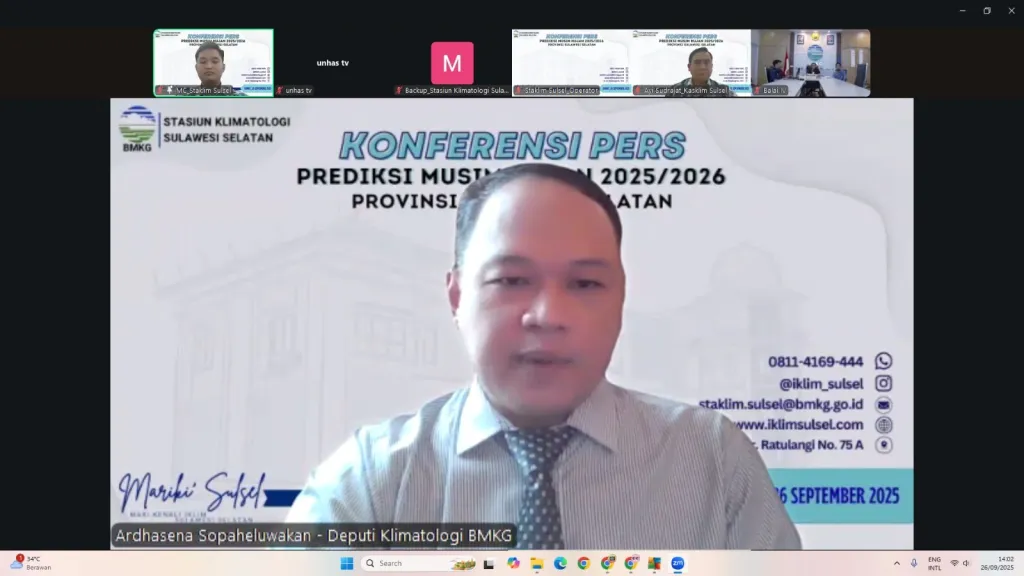 Hal itu diungkapkan Kepala BMKG Stasiun Klimatologi Sulawesi Selatan, Ayi Sudrajat SP MSi dalam konferensi pers virtual yang digelar Jumat, 26 September 2025.