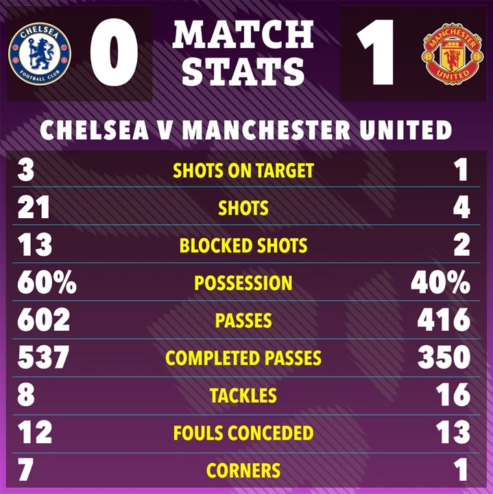 Statistik Pertandingan Chelsea vs Man United. (The Sun)