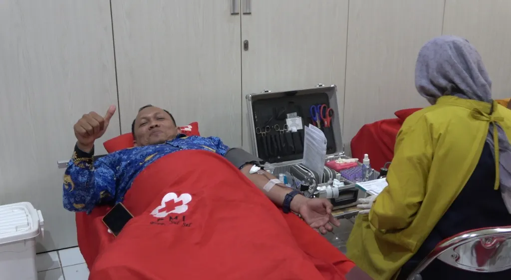 Sejak pagi, antrean peserta donor darah sudah terlihat memenuhi area pendaftaran. Suasana kegiatan berlangsung hangat dan penuh semangat kepedulian terhadap sesama.
