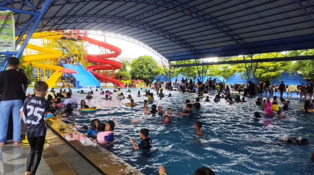 Sejak pagi, lokasi wisata air itu dipadati anak-anak, remaja, hingga orang dewasa yang datang untuk menghabiskan waktu senggang.