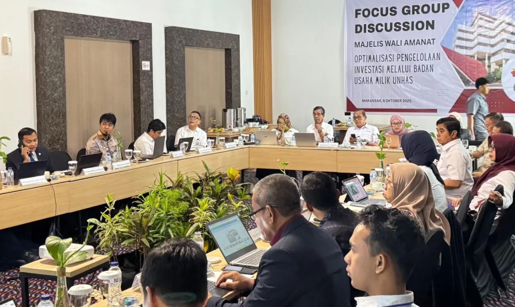 MAKASSAR. UNHAS.TV – Majelis Wali Amanat (MWA) Universitas Hasanuddin (Unhas) menggelar Focus Group Discussion (FGD) bertajuk “Optimalisasi Pengelolaan Investasi melalui Badan Usaha Milik Unhas” di Hotel Unhas & Convention, Makassar, Senin (6/10/2025).