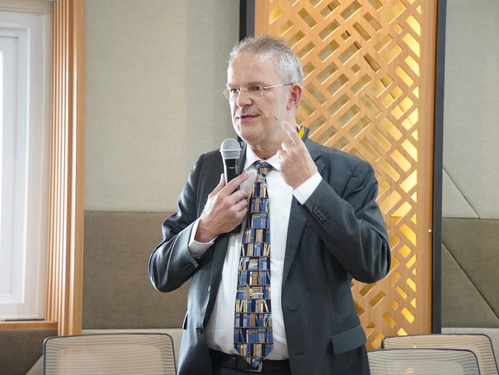 Peter tampil membawakan kuliah tamu dengan topik “Obtaining Best Evidence in Medical Education” yang dihadiri oleh dosen-dosen serta mahasiswa Program Magister Health Professions Education (MHPE) FK Unhas, Senin (6/10/2025).