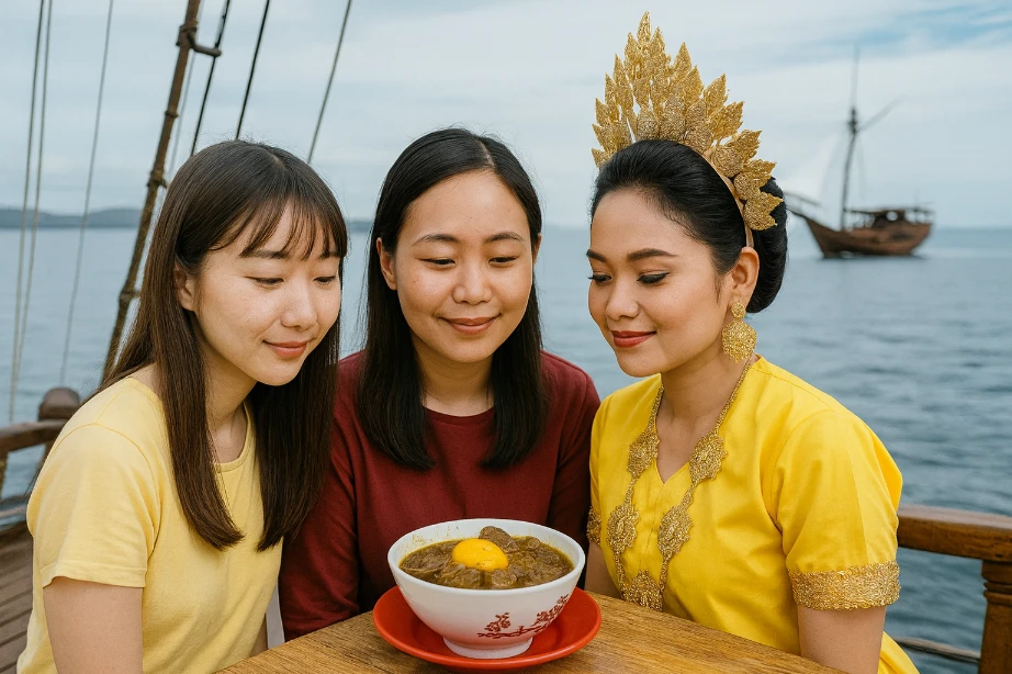Kapal-kapal VOC, pedagang Arab, India, dan Cina, semua pernah singgah di Makassar, meninggalkan jejak pada racikan dapur rakyat. Kuah pekat itu menyimpan gema pasar tua, bau garam laut, dan hiruk-pikuk pelabuhan.