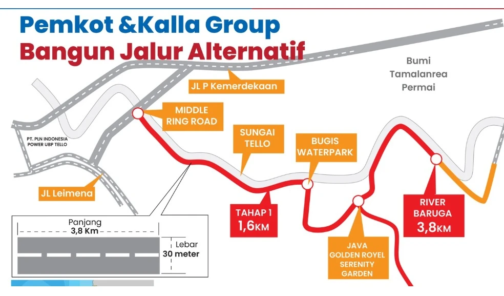 Jalan alternatif ini dirancang sepanjang sekitar 1,3 kilometer di atas lahan kurang lebih 6 hektare. Jalurnya direncanakan terbuka di kawasan pinggir Sungai Tallo dari Bukit Baruga Antang.