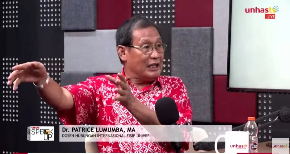 Akademisi Hubungan Internasional FISIP Universitas Hasanuddin, Dr Patrice Lumumba MA, saat tampil di Studio Unhas TV, Selasa (27/1/2026). (dok unhas tv)