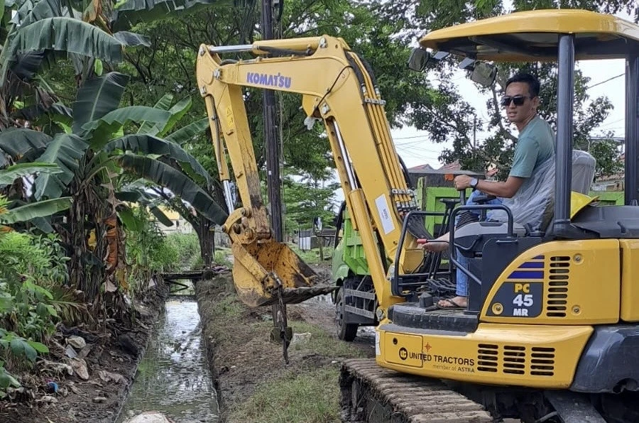 Salah satu upaya yang kini dilakukan adalah menurunkan alat berat excavator untuk melakukan normalisasi saluran air dan pengerukan sedimen di sejumlah titik rawan genangan.