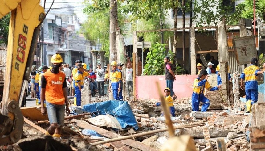 Sekitar 30 truk disiapkan untuk mengangkut sisa bongkaran dan material yang langsung dibuang pada hari yang sama. Dalam operasi itu, tim juga menangani sejumlah penyandang masalah kesejahteraan sosial di lokasi sebagai bagian dari penataan kawasan secara menyeluruh.