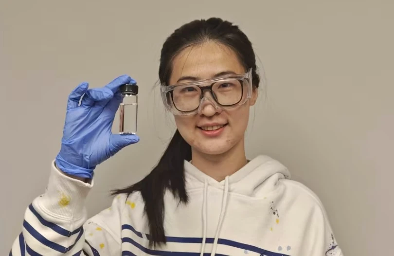 BATERAI - Yue Sun, peneliti dari The Chinese University of Hong Kong memperlihatkan cairan temuannya yang bisa dipakai pada proses produksi baterai lithium-ion. Foto: The Chinese University of Hong Kong.