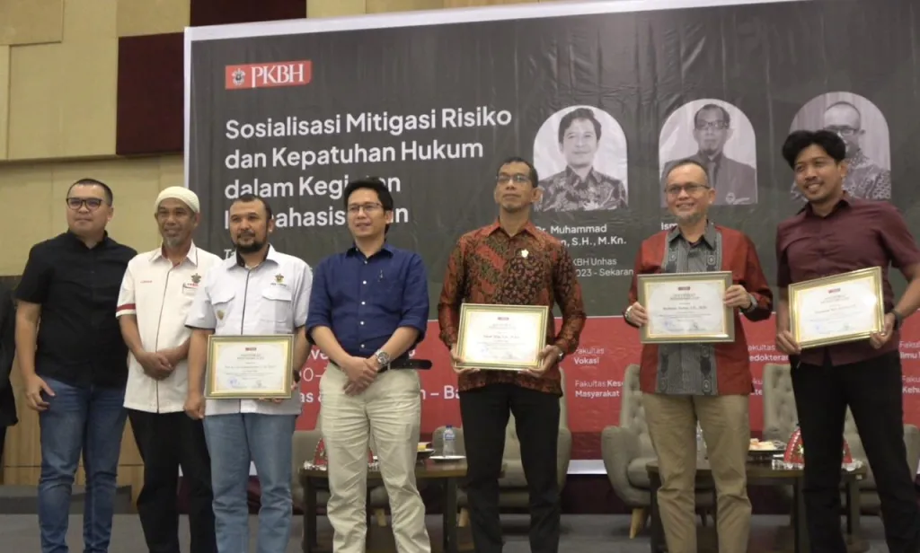 MAKASSAR, UNHAS.TV - Pusat Konsultasi dan Bantuan Hukum (PKBH) Universitas Hasanuddin menggelar Sosialisasi Mitigasi Risiko dan Kepatuhan Hukum Tahap 2 bagi rumpun sains dan teknologi di Unhas Hotel and Convention, Kampus Tamalanrea, Rabu (12/11/2025).