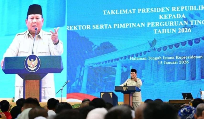 JAKARTA, UNHAS.TV - Presiden Prabowo Subianto memberikan sejumlah arahan untuk penguatan pendidikan tinggi nasional pada acara Taklimat Presiden Republik Indonesia dengan Rektor serta Pimpinan Perguruan Tinggi Negeri Tahun 2026, yang digelar di Istana Kepresidenan Jakarta, Kamis (15/1/2026).